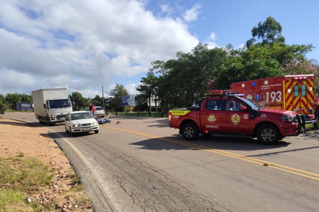 Jovem de 27 anos fica ferido em acidente entre carro e moto em Ibirama
