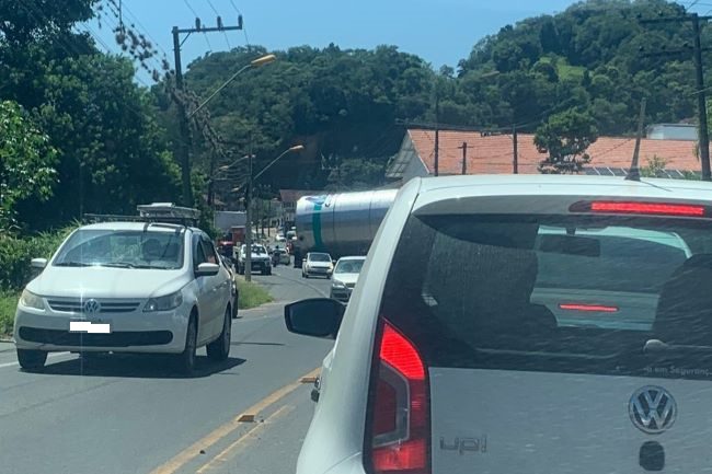 O transporte de um reservatório de água, da Companhia Catarinense de Águas e Saneamento (CASAN) deixa o trânsito lento nesta manhã de segunda-feira (06) em Ibirama. Segundo informações, o reservatório é o primeiro de três que serão trazidos para o município.