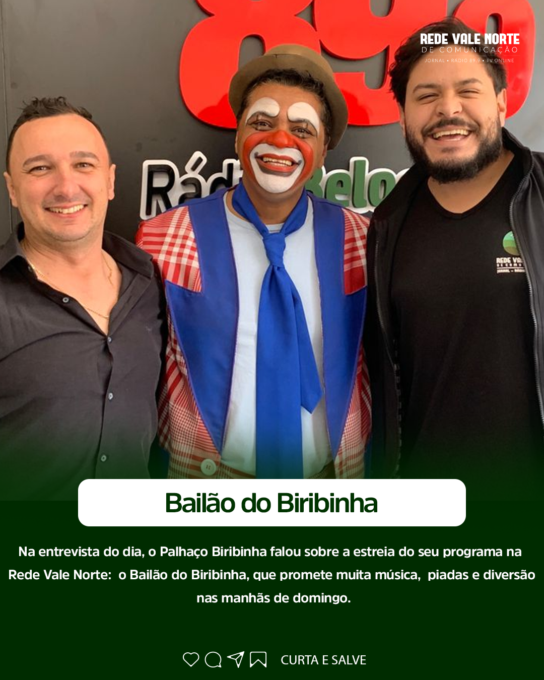 🎭📻 O carisma do circo agora também no rádio!Na entrevista do dia, o Palhaço Biribinha falou sobre a estreia do seu programa na Rede Vale Norte: o Bailão do Biribinha, que promete muita música, piadas e diversão nas manhãs de domingo. 📅 Estreia: 28 de setembro🕤 Das 9h30 às 12h30📻 Aqui na 89FM