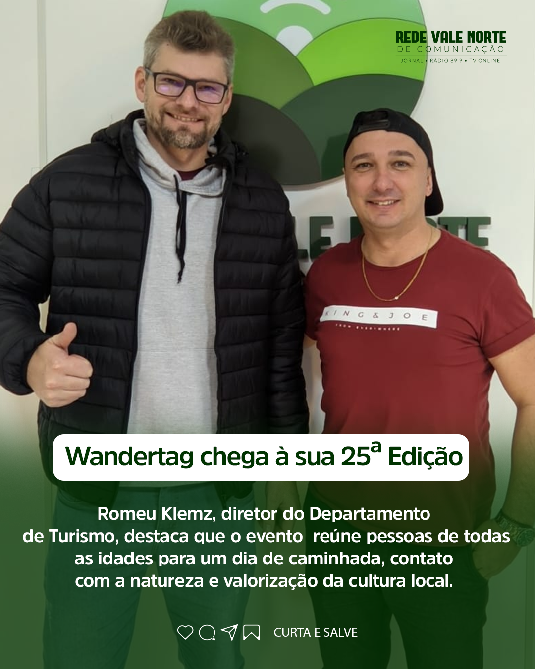 🚶♂️🌿 O Wandertag chega à sua 25ª edição em Ibirama!Romeu Klemz, diretor do Departamento de Turismo, destaca que o evento reúne pessoas de todas as idades para um dia de caminhada, contato com a natureza e valorização da cultura local. 📅 Dia 21 de setembro📍 Sociedade de Atiradores Rio Selim✅ Inscrições gratuitas 👉 Participe e […]