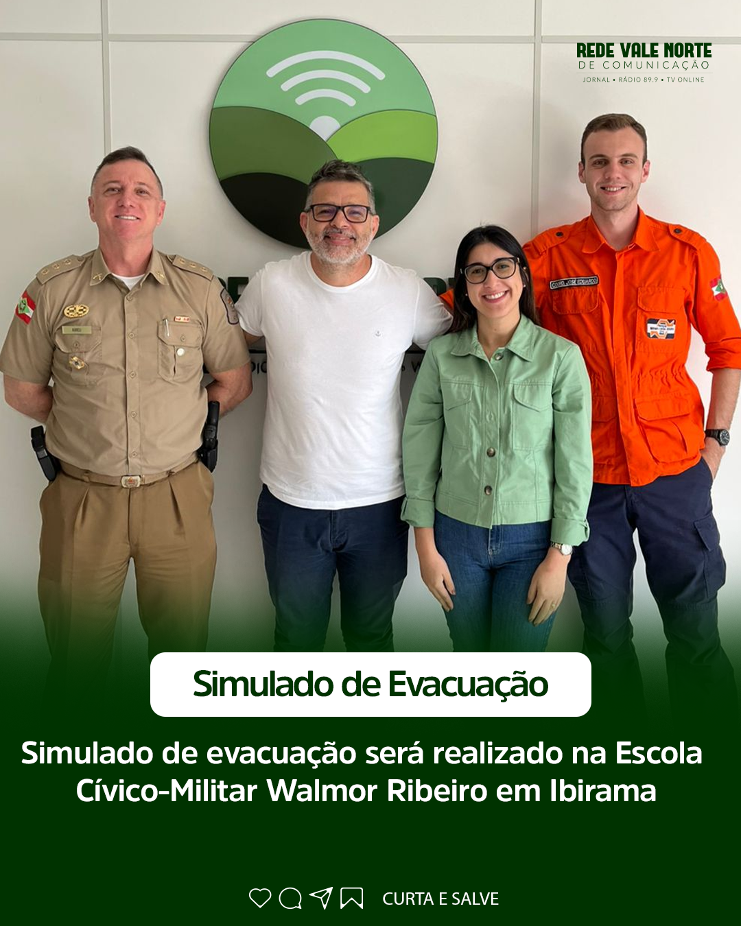 🚨 Nos dias 10 e 12 de novembro, a Escola Cívico-Militar Valmor Ribeiro realizará um simulado de evacuação em parceria com a Defesa Civil de Ibirama. O coordenador José Eduardo do Rosário, o coronel Renato Abreu e a diretora Tamires Cenci Dias Duwe explicaram que a ação tem o objetivo de preparar alunos e professores […]