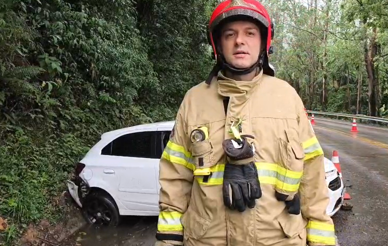 Bombeiros Voluntários atendem capotamento de veículo na BR-470, em Ibirama