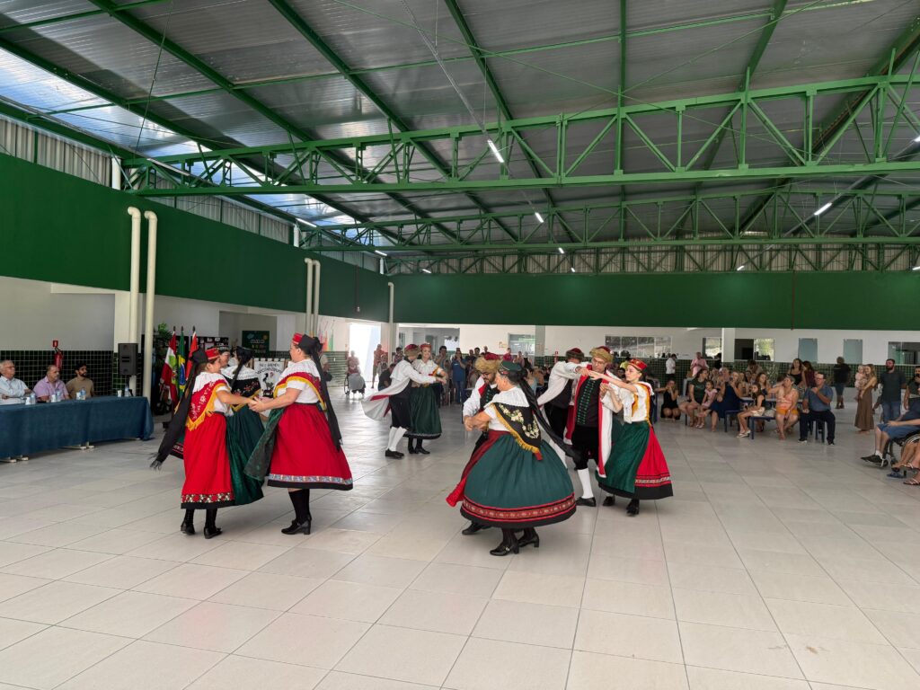 Um momento especial da solenidade foi a apresentação do Grupo Folclórico Neu Bremen Volkstanzgruppe, fundado por Ruth Fritsche Ihringer, que celebrou a cultura, a memória e o legado deixado por ela à comunidade.