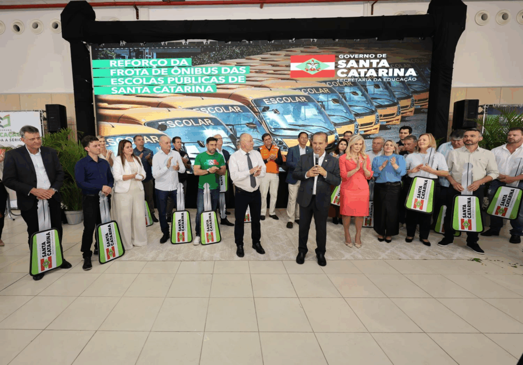 O deputado estadual Oscar Gutz (PL) acompanhou, nesta quinta-feira (13), a entrega dos primeiros ônibus escolares destinados a 20 municípios catarinenses. O ato contou com a presença do governador Jorginho Mello e da secretária de Estado da Educação, Luciane Ceretta.