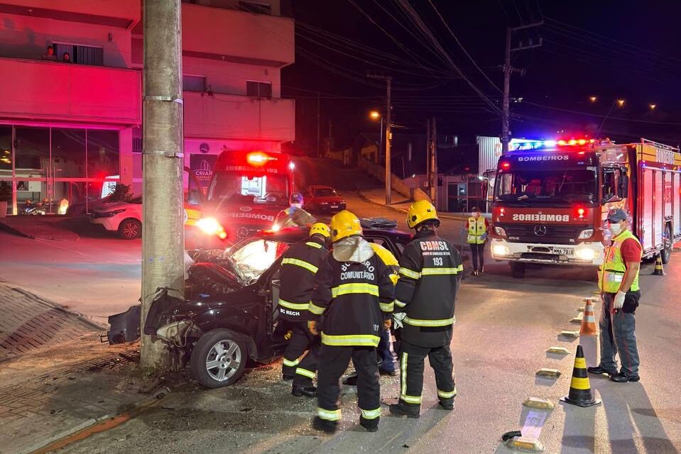 Mulher morre após carro colidir contra poste no Centro de Rio do Sul