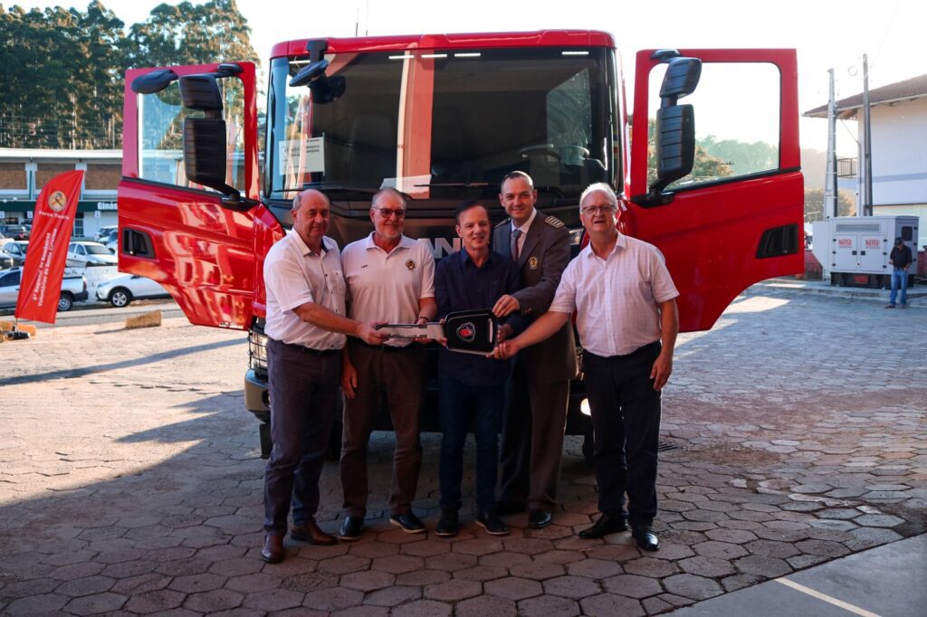 A entrega do caminhão integrou uma cerimônia que também marcou a formatura de 17 novos bombeiros voluntários, elevando o efetivo da corporação para 60 integrantes. Durante o evento, também foram realizadas formaturas dos programas Bombeiro Mirim, Petiz e Júnior, reunindo mais de 500 participantes.
