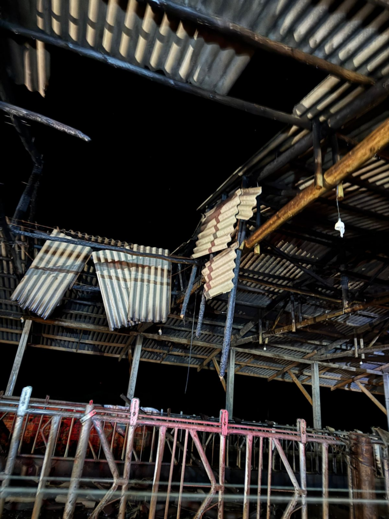 Segundo informações repassadas pelo proprietário, o fogo possivelmente teve início em um trator New Holland que estava sob a estrutura, propagando-se rapidamente para a cobertura do galpão, construída em madeira.
