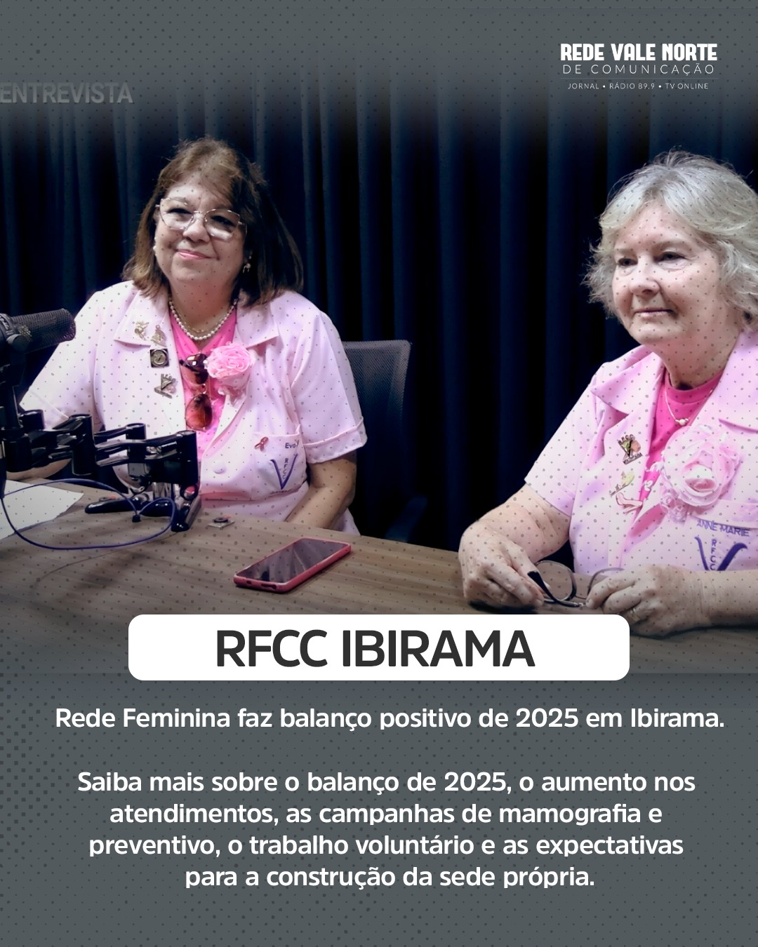 Na Entrevista do Dia, a presidente e a vice-presidente da Rede Feminina de Combate ao Câncer de Ibirama falaram sobre o balanço de 2025, o aumento nos atendimentos, as campanhas de mamografia e preventivo, o trabalho voluntário e as expectativas para a construção da sede própria. Link para a entrevista completa: https://youtu.be/b3EqlH5sCns