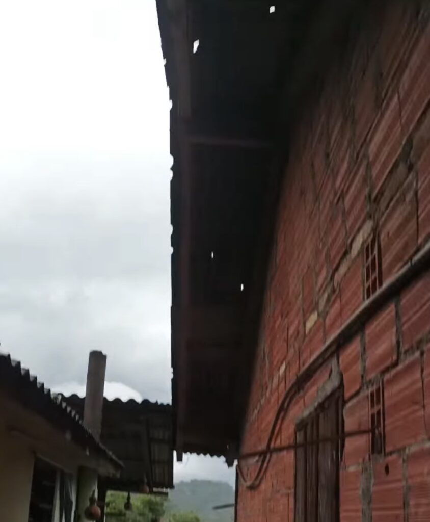 A chuva intensa causou danos em diversas residências, principalmente em telhados e estruturas de eternite, deixando inclusive algumas pessoas desalojadas, que precisaram buscar abrigo temporário na casa de familiares.