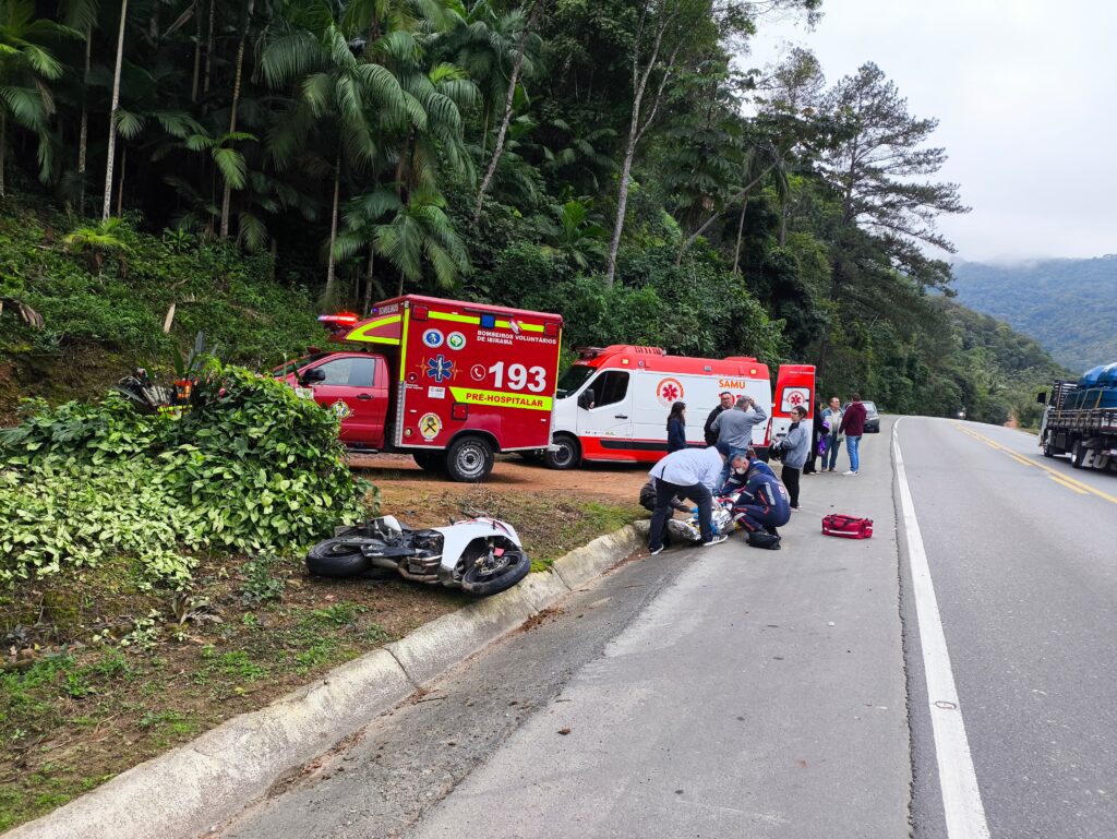 Um acidente envolvendo uma motocicleta e um carro mobilizou equipes de resgate na manhã desta segunda-feira, 07, na BR-470, altura do km 116, no bairro Areado, em Ibirama.