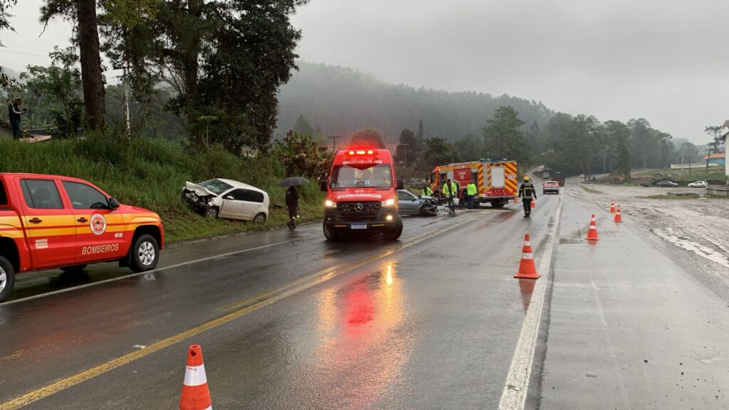 Um acidente de trânsito envolvendo dois veículos foi registrado na manhã desta sexta-feira (8) na BR-470, em Trombudo Central. A ocorrência foi atendida pelo Corpo de Bombeiros Militar de Pouso Redondo por volta das 7h23, na altura do km 162, próximo ao trevo de acesso ao município.