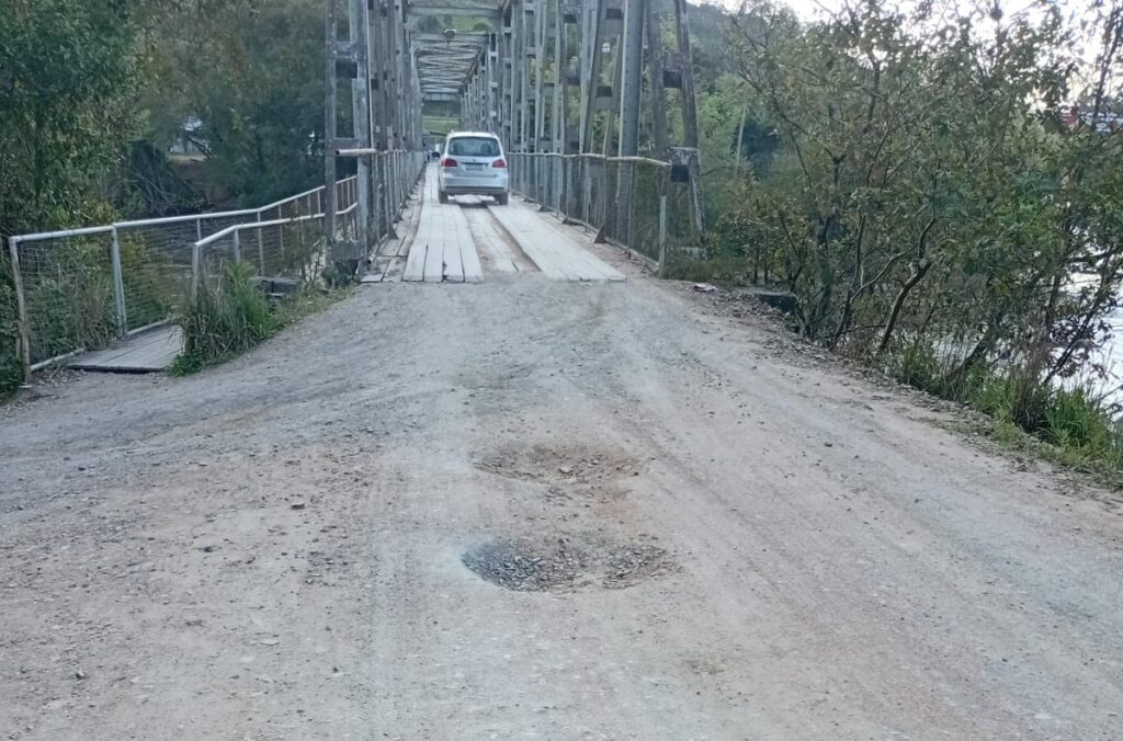Moradores da comunidade da Ressacada I, em Apiúna, voltaram a cobrar soluções para os problemas enfrentados na Ponte de Ferro – Ponte Hermann Baumann e na estrada que corta a localidade. Um dos pontos mais críticos está no tablado de madeira da ponte, onde buracos chegam a ser tapados de forma improvisada com pedras.