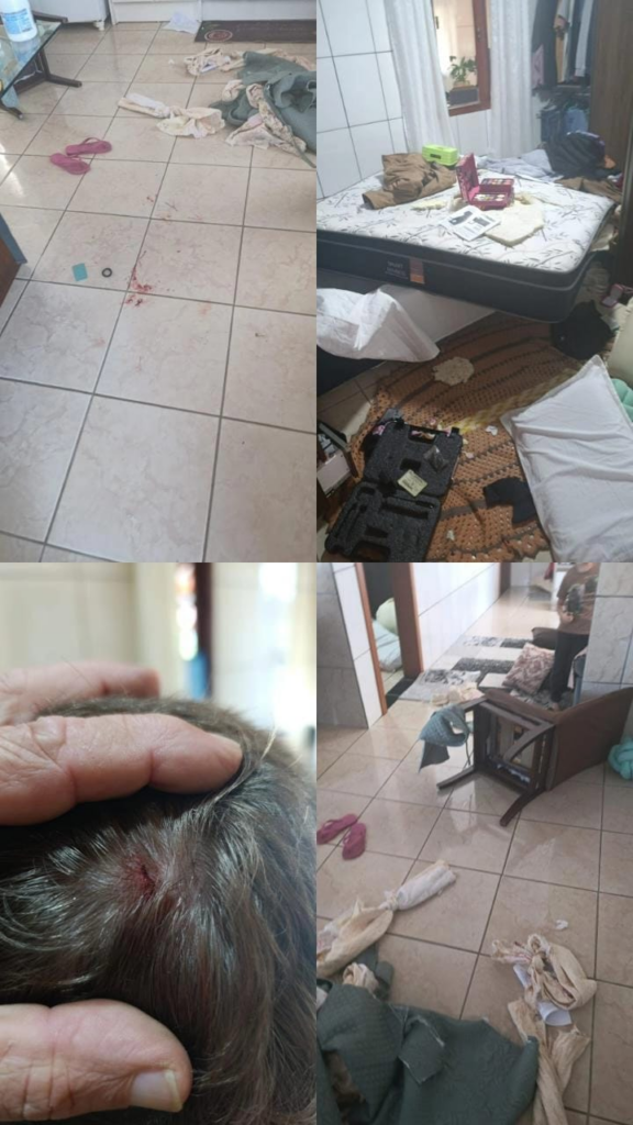 Segundo a PM, os suspeitos invadiram inicialmente duas residências, onde renderam os moradores sob ameaças e os obrigaram a se deslocar até uma terceira casa. No local, as vítimas foram amarradas, agredidas e mantidas sob constante intimidação. Em um dos momentos mais críticos, os criminosos chegaram a ameaçar atear fogo em uma criança. Ao menos uma pessoa ficou ferida, apresentando um corte na cabeça.
