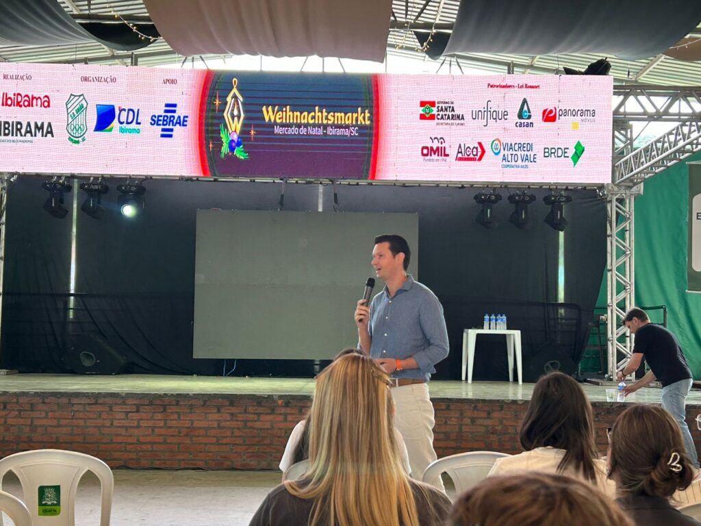 O público acompanhou, na manhã desta sexta-feira, dia 12, o 1º Encontro Empresarial da Indústria, Comércio e Turismo, um dos destaques da programação do XXII Weihnachtsmarkt – Mercado de Natal. O evento ocorreu no Centro de Eventos Manoel Marchetti e reuniu lideranças, empresários e representantes do setor produtivo para discutir oportunidades de crescimento e estratégias de fortalecimento econômico para a região.