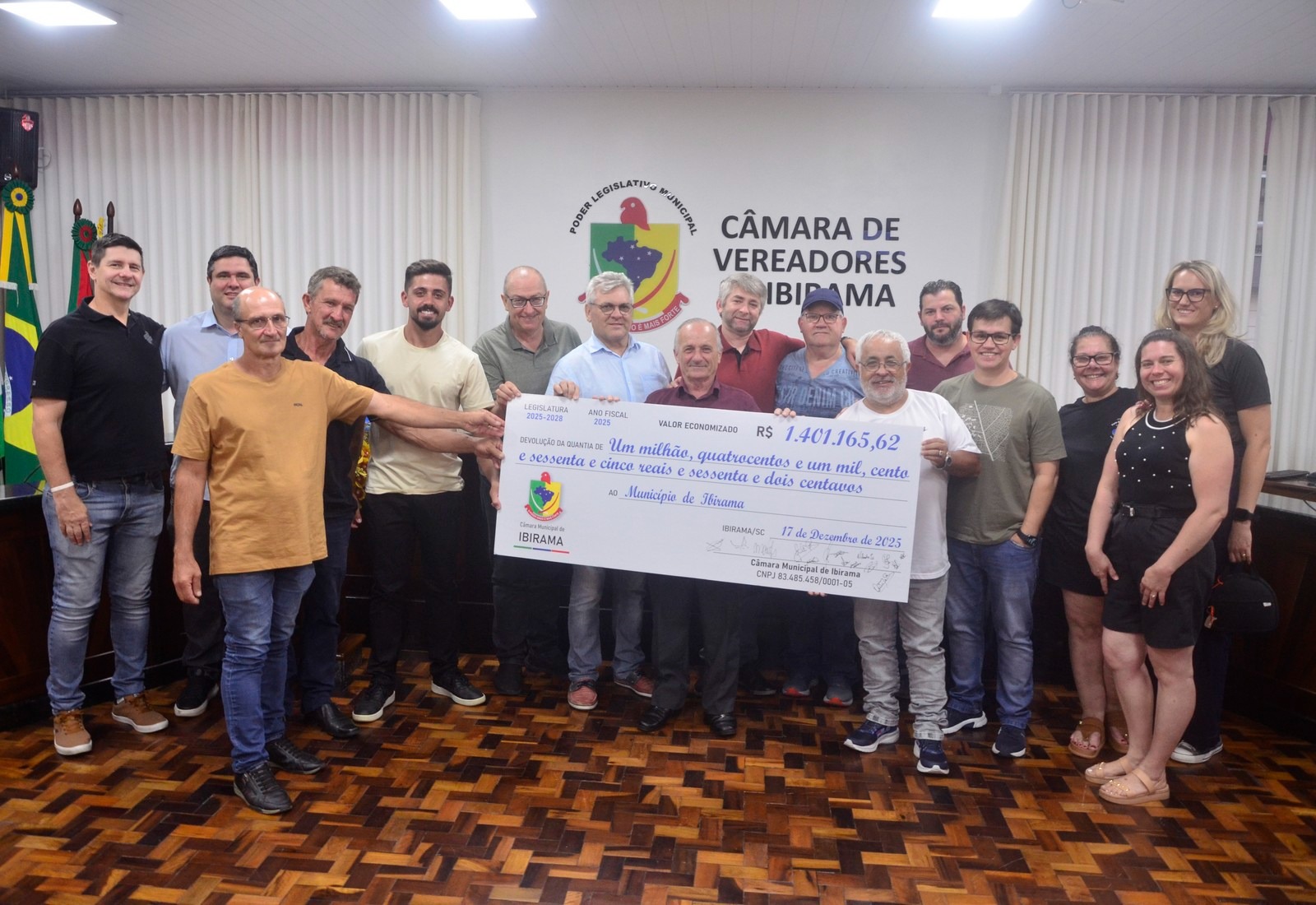 A Câmara de Vereadores de Ibirama realizou, na última sessão ordinária do ano, a devolução de mais de R$ 1,5 milhão ao Poder Executivo. O montante é resultado da economia obtida ao longo de 2025 com a gestão interna do Legislativo e será incorporado ao orçamento municipal, possibilitando novos investimentos em diversas áreas.