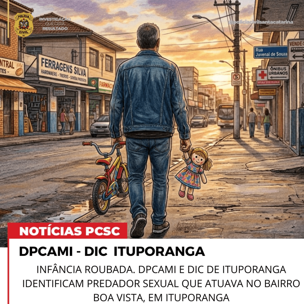 A Polícia Civil de Santa Catarina, por meio da DPCAMI e da DIC de Ituporanga, identificou um homem de 61 anos suspeito de praticar importunação sexual contra uma criança no bairro Boa Vista I, em Ituporanga.