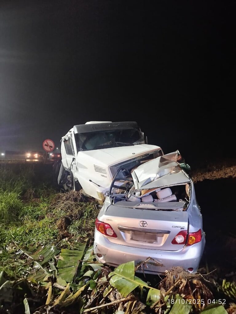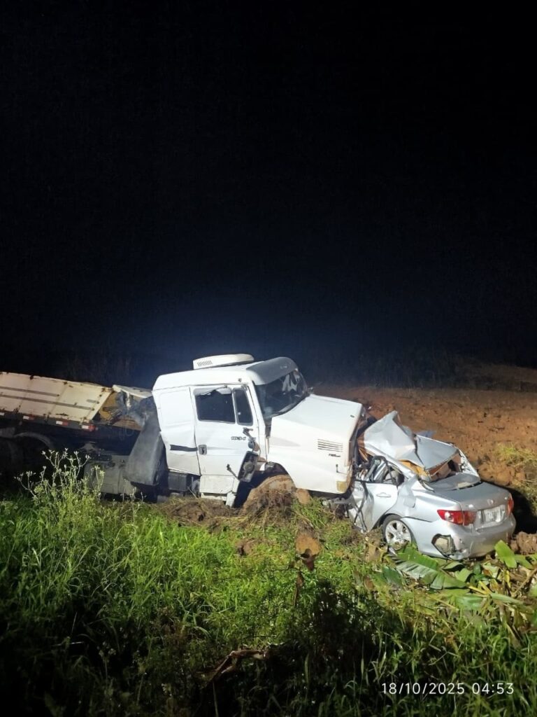 Um grave acidente de trânsito envolvendo um carro e um caminhão foi registrado nas primeiras horas deste sábado (18), na BR-470, no bairro Vila Adelaide, em Pouso Redondo.
