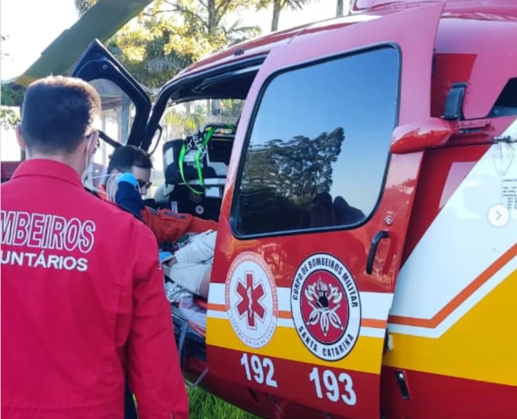 De acordo com informações dos Bombeiros Voluntários de Vitor Meireles, a vítima foi encontrada ainda no solo, com ferimentos graves, apresentando suspeita de fraturas nos membros superiores e inferiores, além de pneumotórax hipertensivo, quadro que representa risco à vida.