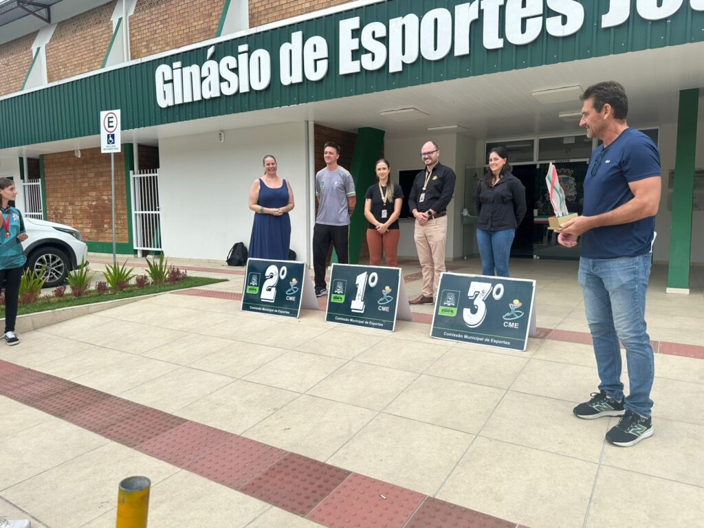 A cerimônia de encerramento e premiação foi realizada no Ginásio de Esportes João Moretti, reunindo autoridades, educadores e alunos. Estiveram presentes a secretária de Educação, Katiuscia Raika Brandt Bihringer, representantes da Comissão Municipal de Esportes, diretores escolares, professores e atletas.