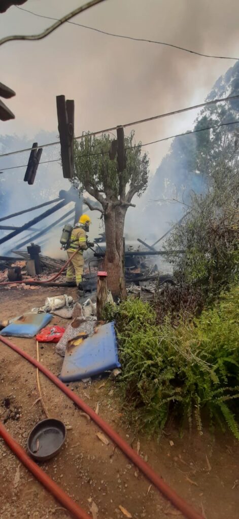 Um incêndio de grandes proporções destruiu totalmente um rancho localizado na Rua Alberto Fucks, no bairro São Miguel, em Ibirama, na tarde deste sábado (25). O Corpo de Bombeiros Voluntários foi acionado por volta das 14h01 e mobilizou quatro viaturas para o combate às chamas.
