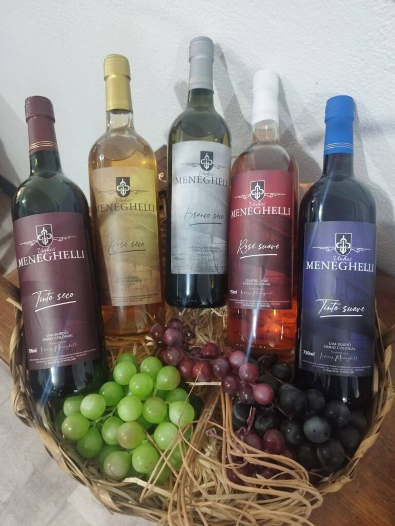 Hoje, a vinificação é feita de forma totalmente artesanal, em uma pequena estrutura na propriedade. A produção anual gira em torno de 6 mil garrafas, que são comercializadas ao longo do ano, entre uma safra e outra. “A gente não consegue nem estocar. Vende tudo e, às vezes, ainda falta”, afirma. O portfólio inclui cinco tipos de vinhos, entre secos e suaves: tinto seco, branco seco, rosé seco, tinto suave e um rosé suave exclusivo da propriedade, elaborado a partir de quatro variedades de uva. Há ainda planos para lançar um vinho amadeirado, com Bordeaux envelhecido em madeira.