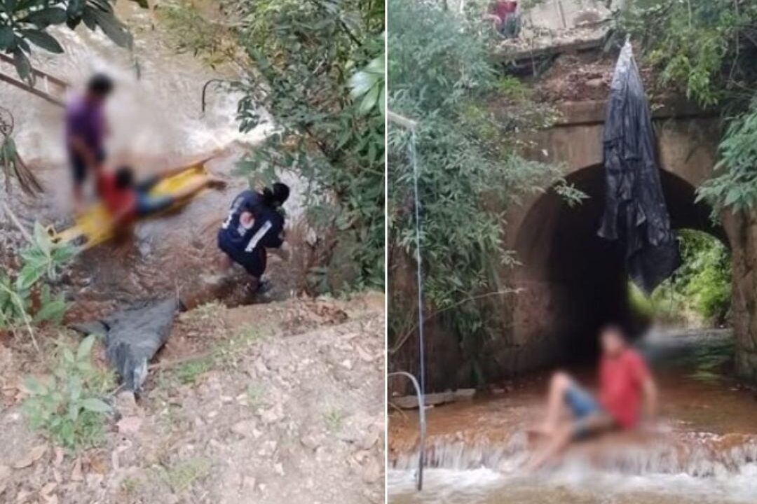 Microtrator cai de ponte de seis metros e deixa dois feridos em Lontras