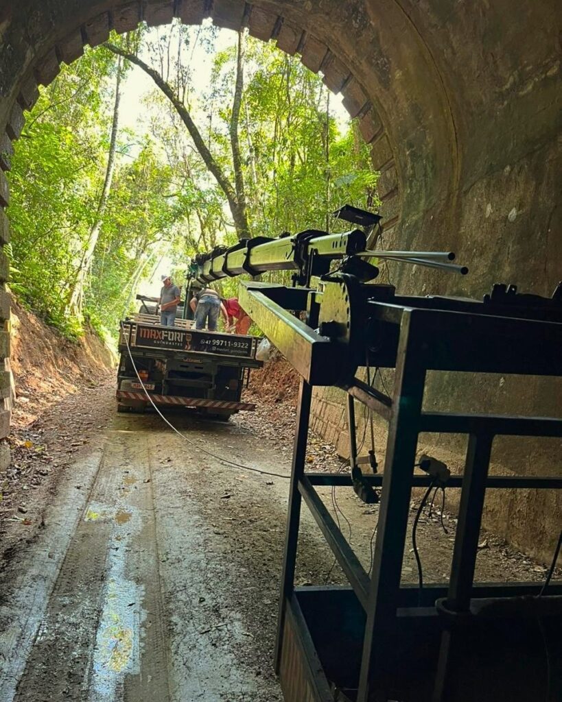 O município de Apiúna concluiu a instalação de um sistema de iluminação no maior túnel da antiga Estrada de Ferro Santa Catarina, localizado na comunidade de Ribeirão Carvalho. A iniciativa faz parte das ações de revitalização de um dos principais pontos históricos e turísticos da cidade.