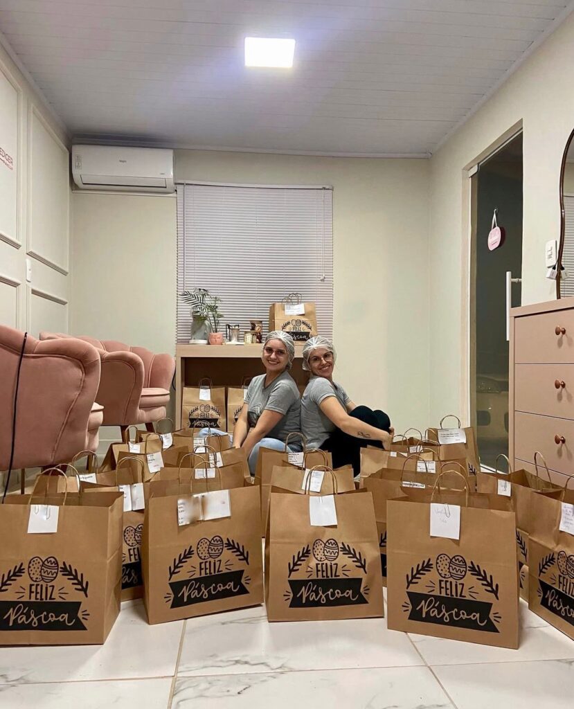 As duas empreendedoras trabalham juntas na confeitaria e esta foi a quarta Páscoa produzindo os chocolates artesanalmente. Mesmo sem contratações temporárias, elas conseguiram ampliar a produção ao longo dos anos. “Até hoje não contratamos ninguém. Trabalhamos só nós duas. Com o tempo fomos ganhando mais experiência e também investindo em utensílios e organização dentro da confeitaria, o que facilita bastante a produção”, relata.