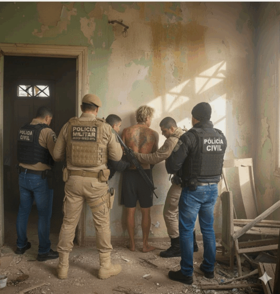 Durante a diligência, os policiais constataram a presença de gravuras nas paredes que faziam menções à facção criminosa à qual o homem estaria vinculado.