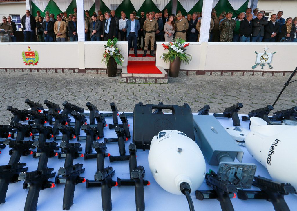 A Polícia Militar de Santa Catarina (PMSC) recebeu nesta segunda-feira, 20, um importante reforço nos serviços de enfrentamento à criminalidade. São 164 novas viaturas, 11.250 pistolas, 649 câmeras de leitura de placa veicular e 1.107 câmeras do Projeto Bem-te-vi. Os equipamentos que garantem mais segurança para os agentes e cidadãos fazem parte do Programa SC Mais Segura. A entrega beneficia 78 municípios de todas as regiões, com investimento de R$ 49 milhões.