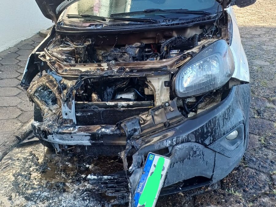Fogo começou na parte frontal do automóvel; Corpo de Bombeiros realizou o rescaldo para evitar novos focos.