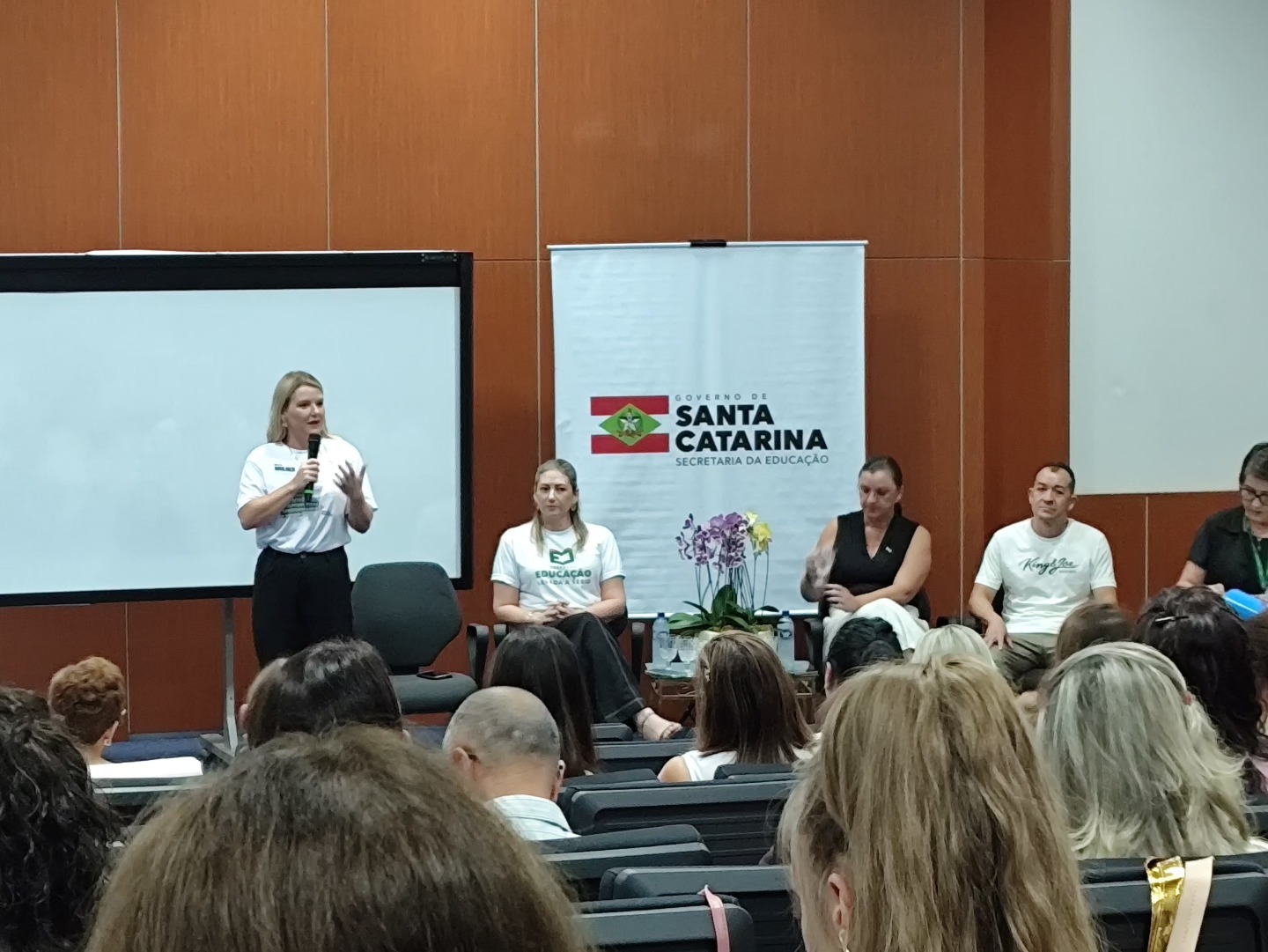 Representatividade Regional: A Coordenadoria Regional de Educação (CRE) de Ibirama marcou presença no encontro inaugural. A professora Letícia representou o corpo docente de Língua Inglesa da região, acompanhada pela técnica Janice, do Núcleo de Acompanhamento Pedagógico. A participação das profissionais garante que as particularidades e experiências das escolas do nosso Vale sejam consideradas na elaboração do documento final.