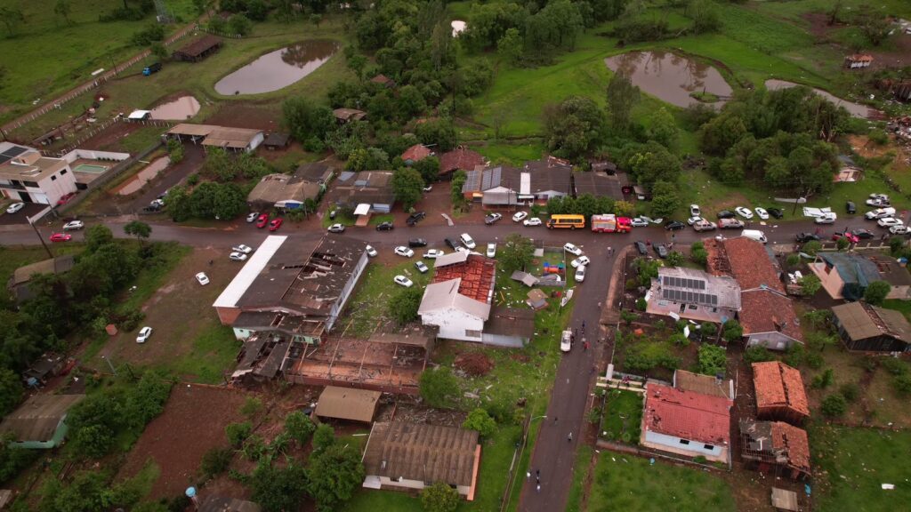De acordo com a Secretaria, os tornados tiveram curta duração, mas provocaram danos intensos e concentrados, padrão característico desse tipo de fenômeno. Em Dionísio Cerqueira, foram registradas quedas de árvores, destelhamentos e interrupção temporária no fornecimento de energia elétrica. Em Xanxerê, houve destruição parcial de estruturas, danos a veículos e o tombamento de um ônibus. Já em Faxinal dos Guedes, os levantamentos apontaram árvores arrancadas em diferentes sentidos e telhados danificados, evidenciando a forte circulação de ventos.