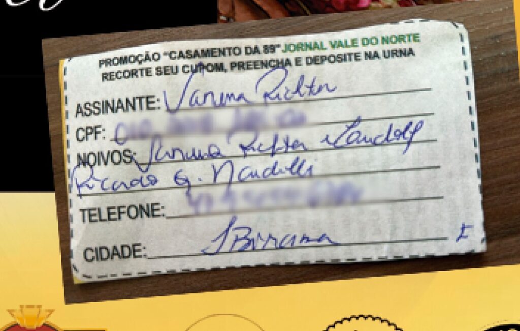 Os noivos contemplados são Vanessa Richter e Ricardo Nardelli, que vão celebrar a união no dia 21 de fevereiro de 2026. A cerimônia poderá ser realizada na Igreja Católica ou Luterana, conforme a escolha do casal, e a recepção poderá ocorrer no Restaurante União, para até 40 convidados — totalmente incluídos no prêmio. Caso desejem ampliar a festa, os noivos poderão fazê-lo assumindo os custos extras.