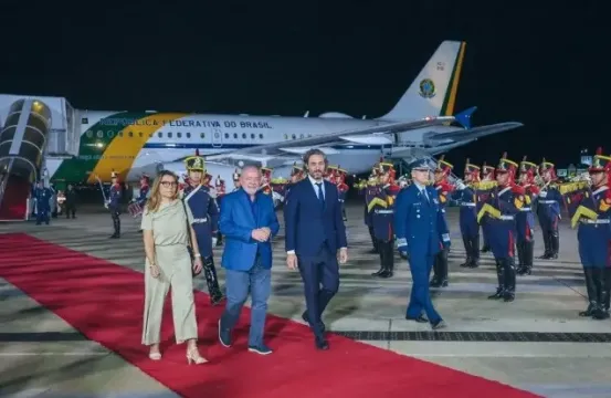O presidente Lula e a primeira-dama Janja desembarcam em Buenos Aires, em janeiro (Foto: Ricardo Stuckert / PR)